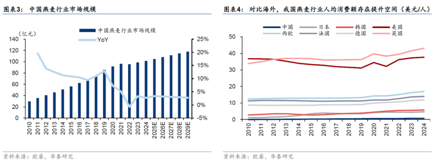 市场数据同样反映出这一趋势的增长潜力。欧睿数据指出,2024年中国燕麦行业零售市场规模已达101亿元,2019-2024年复合年均增长率为3.5%。