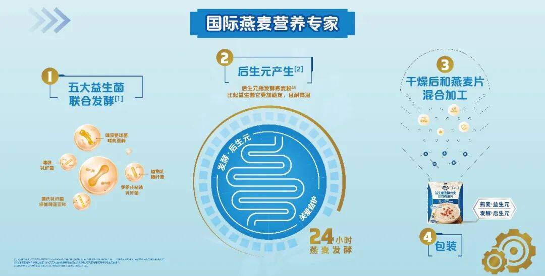 有别于传统谷物大多采用线年开发出专研燕麦发酵工艺,在燕麦中引入精选的五种益生菌进行24小时恒温发酵,使燕麦中的大分子营养物质被分解成更易吸收的小分子活性成分。